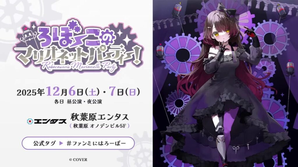 本イベントについてロボ子さんは、「マリオネットのテーマで、ちょっと不思議で楽しい時間をみんなと作りたいです。舞台の糸が震えるみたいに、心が伝わる空間にしたい」とコメントしています。