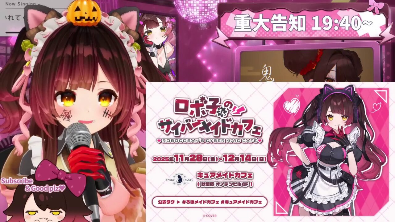ホロライブ0期生・ロボ子さんが、秋葉原のキュアメイドカフェでコラボカフェと、ファンミーティングイベントを開催すると発表しました。