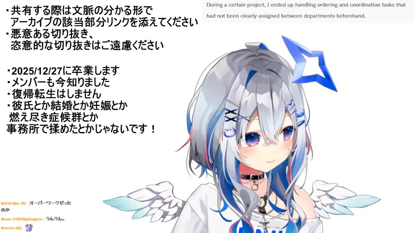 2025年12月2日に自身の配信で卒業すると発表しました。