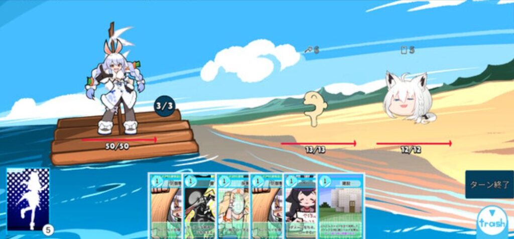 - 兎田ぺこら:カードをドローすると「にんじんストック」が蓄積し、戦闘が有利。