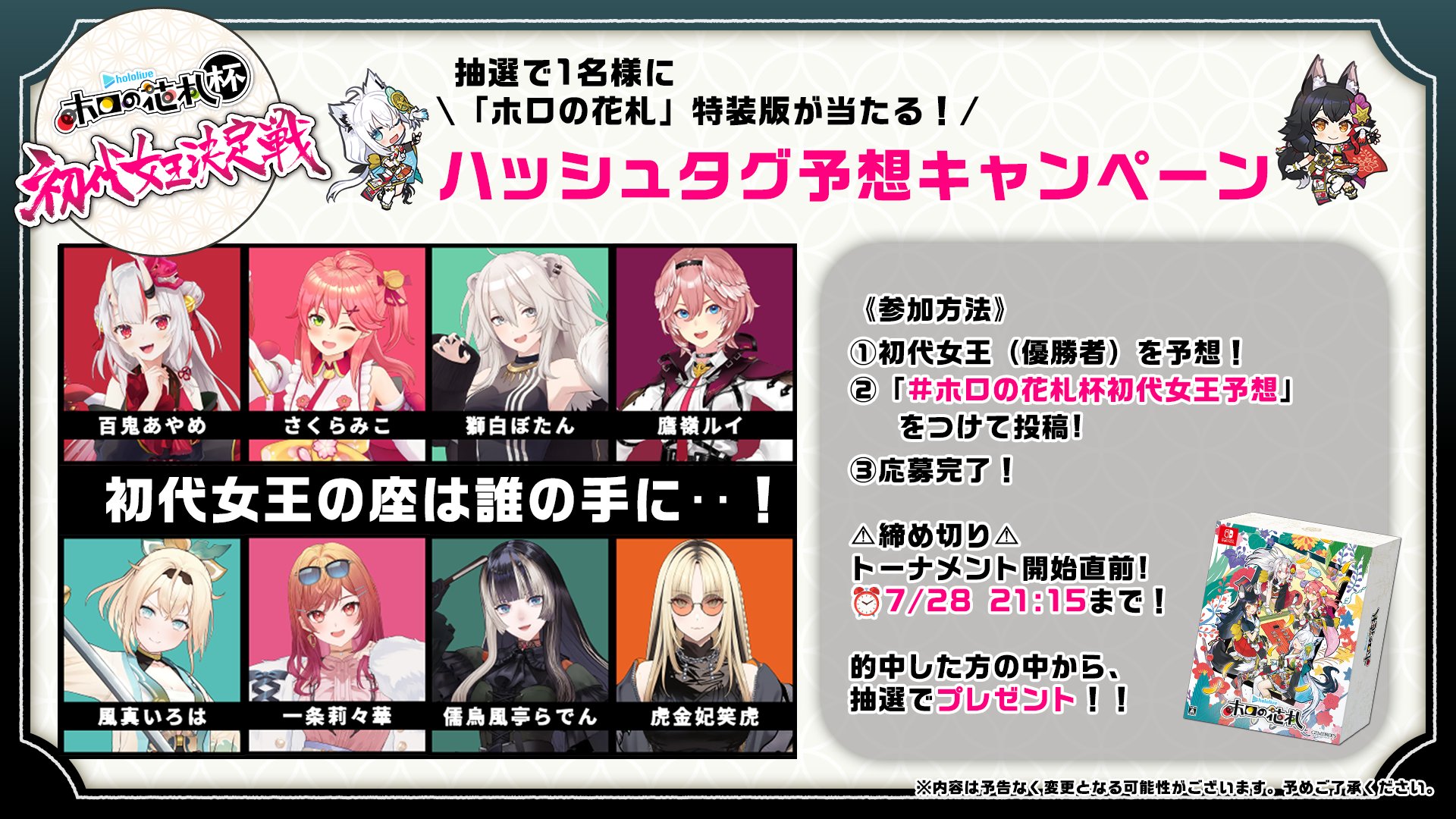 2025年7月23日に白上フブキ、大神ミオの配信にて「ホロの花札杯 初代女王決定戦」の開催が発表されました。