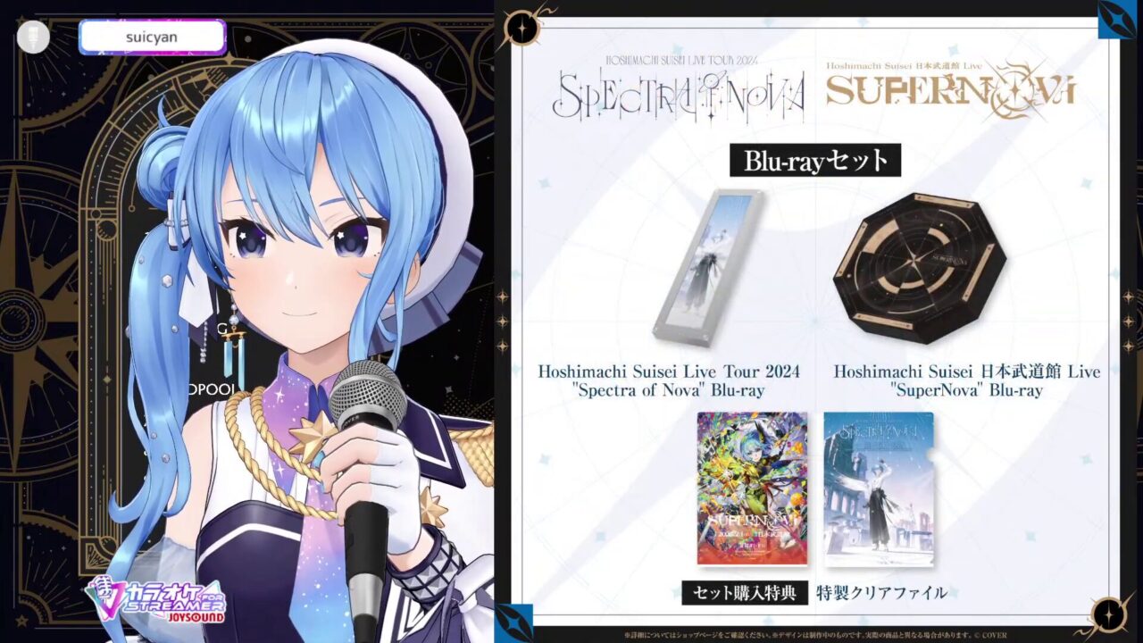 星街すいせいさんが2025年10月24日、Live Tour 2024 “Spectra of Nova”と武道館ライブ“SuperNova”のBlu-ray発売を告知しました。