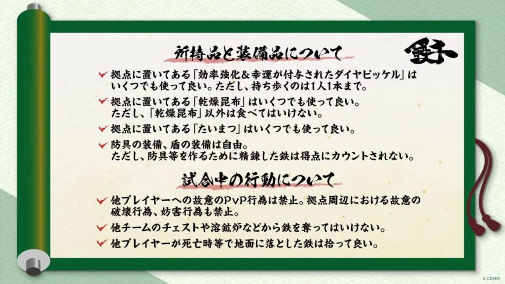 禁止事項故意のPVP・破壊行為・アイテム窃取行為は禁止