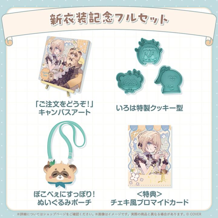 • ■新衣装記念フルセット ・グッズ3種 ・特典:風真いろは箔押し複製サイン入り「杜本描き下ろし チェキ風ブロマイドカード」