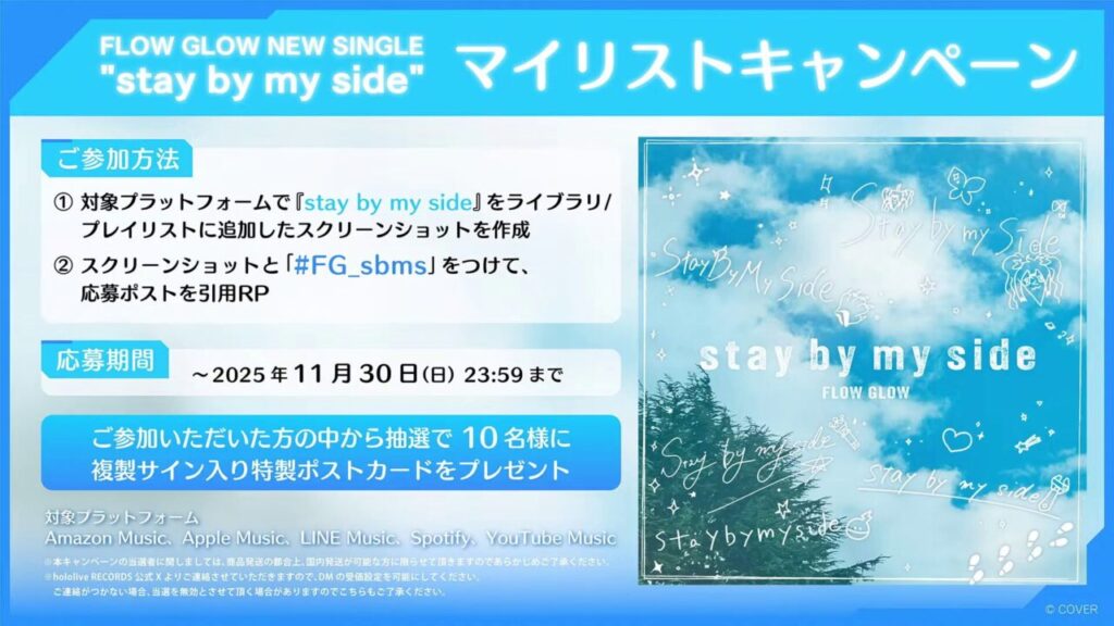 同曲をプレイリストに追加した画面のスクリーンショットをX(Twitter)に投稿すると、抽選で10名にオリジナルポストカードが当たります。