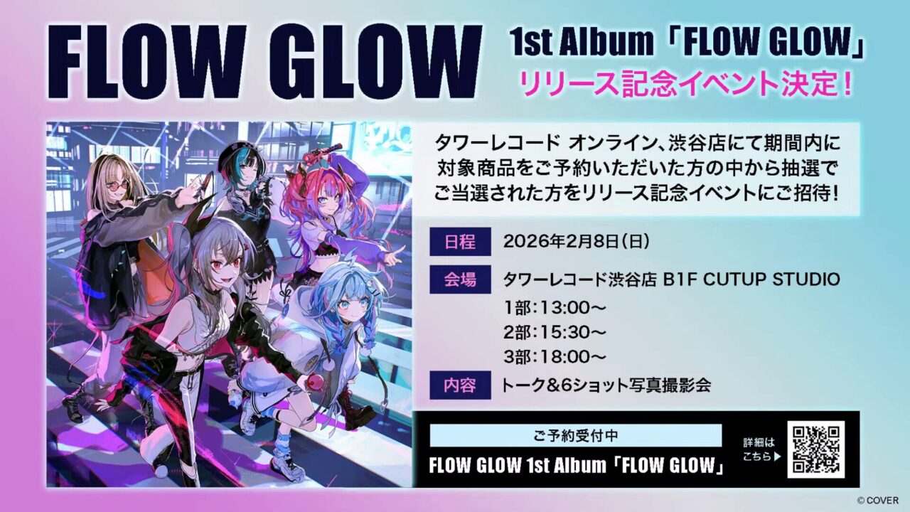 1st Album「FLOW GLOW」のリリースを記念して、来年2月8日に「タワーレコード渋谷店 B1F CUTUP STUDIO」でイベントが開催されます。